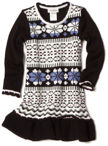 Youngland Girls 2-6X Knit Long Sleeve Sweater Dress, Black/White, 6